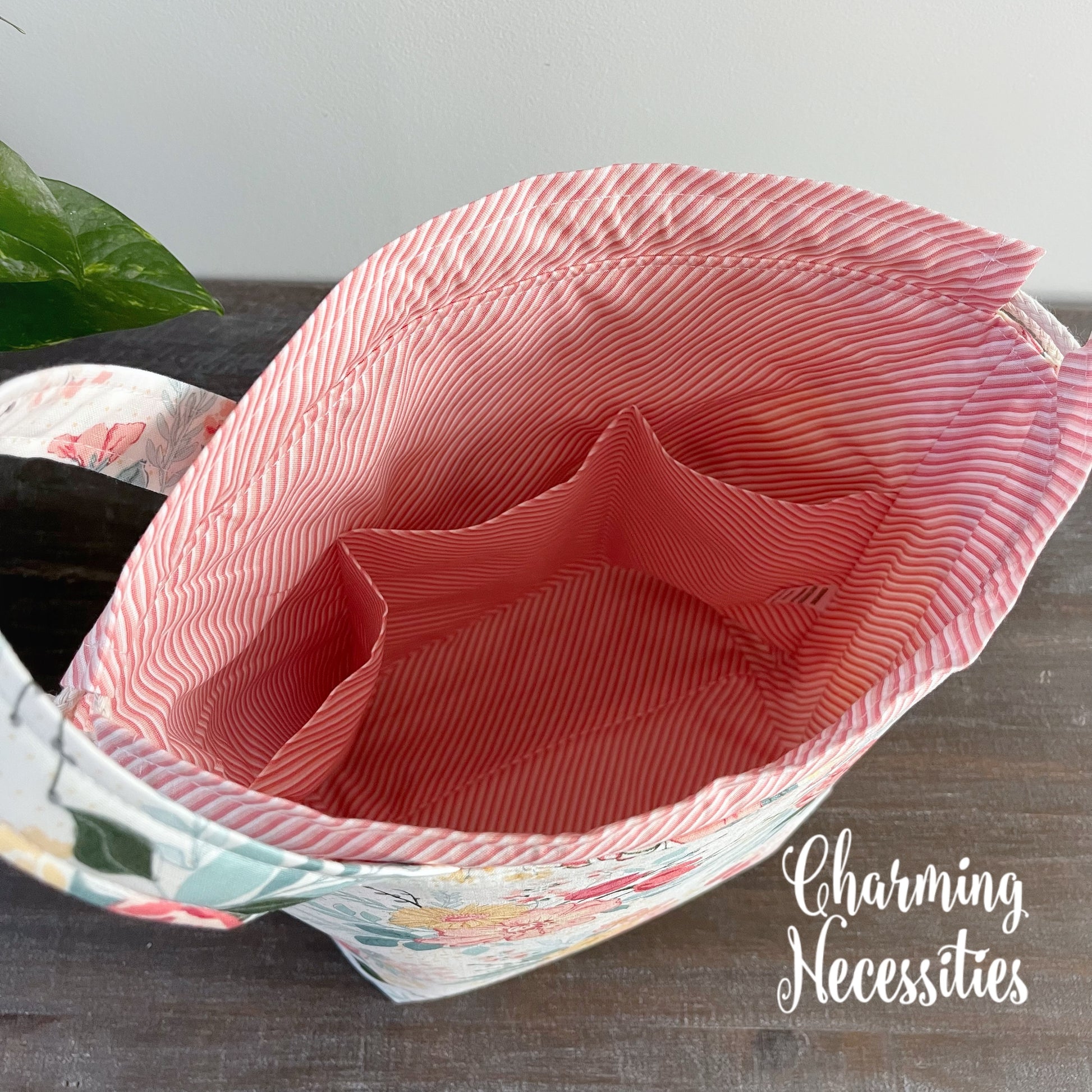 A project bag perfect for bringing along your knitting, crocheting, sewing, or any other projects!