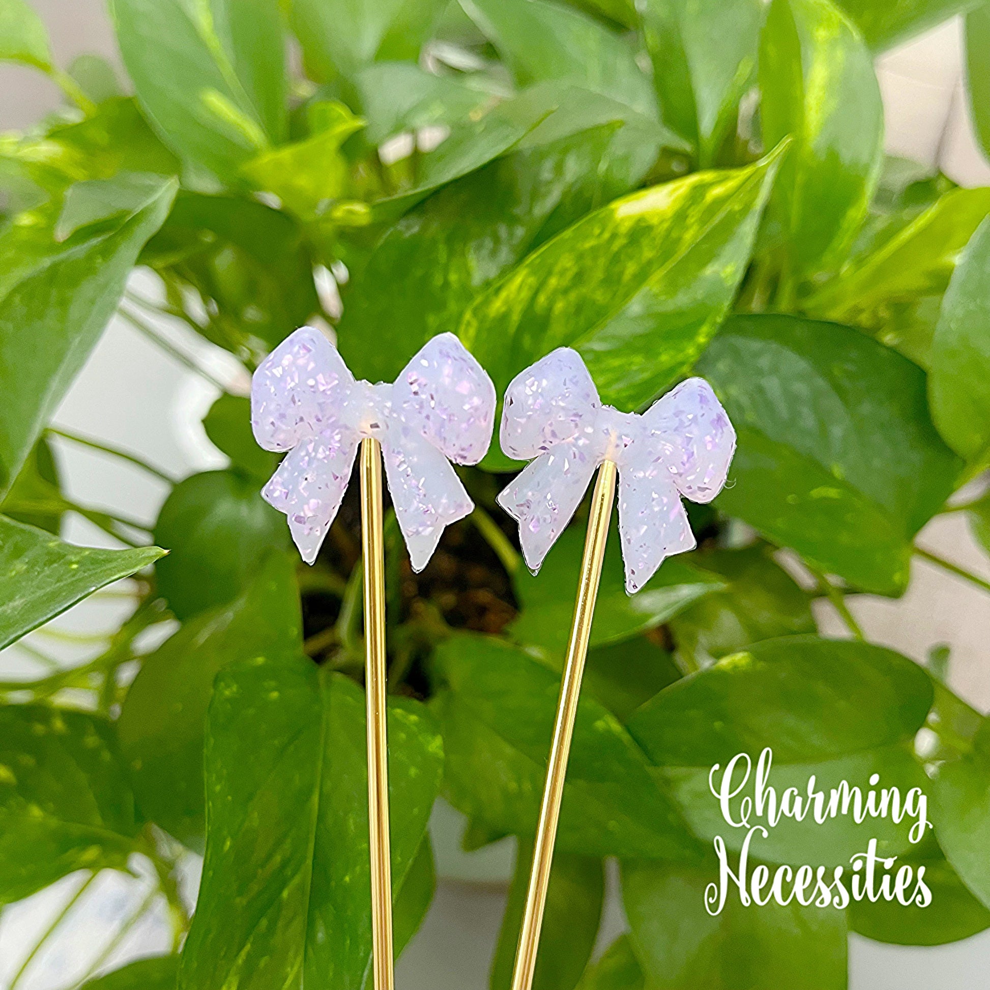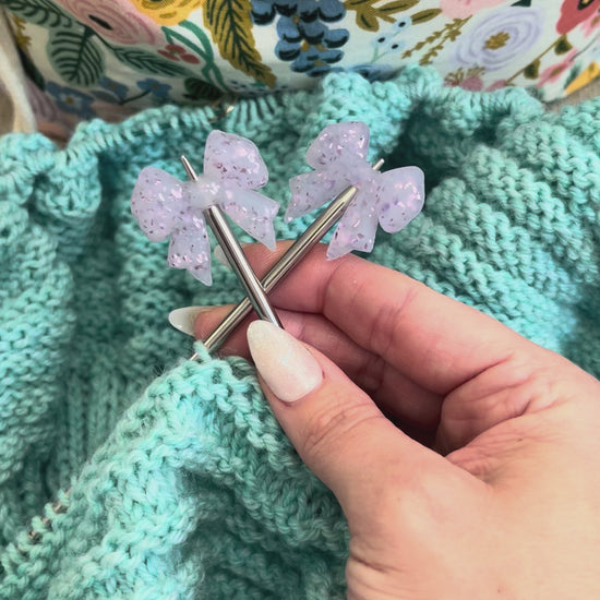 Stitch Stoppers, Lavender Sparkle Bows, Set of 2, Knitting Accessories, Stitch Holders, Gifts for Knitters