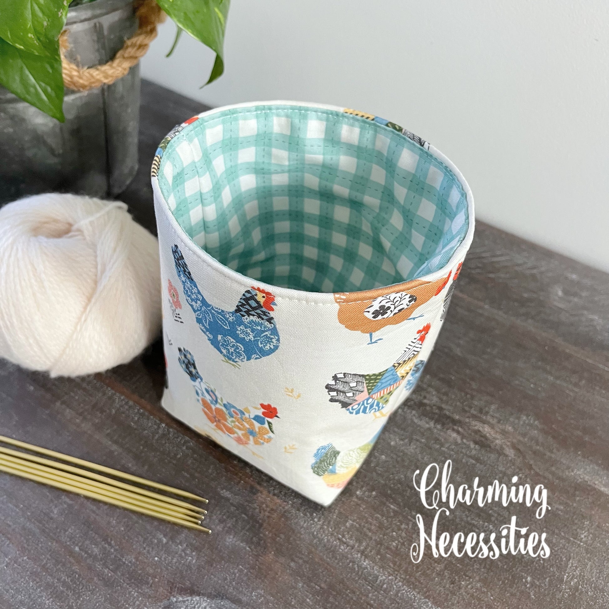 Yarn Bowl Cozy Basket, Floral Chickens, Knitting Accessories Yarn Storage Organization